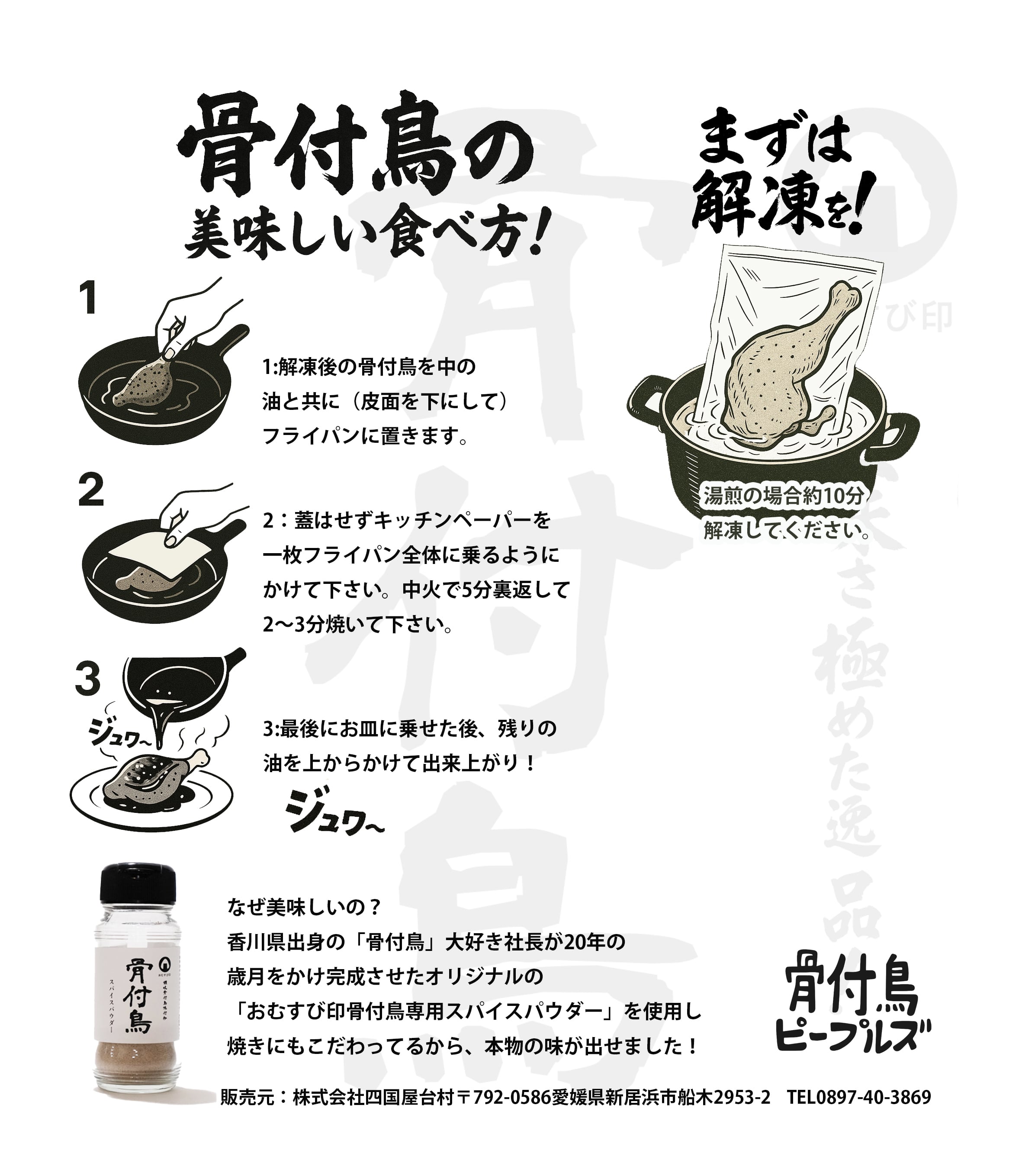 香川県出身の「骨付鳥」大好き社長が、厨房器具販売にて様々な骨付鳥屋さんとお付き合いする中で得たノウハウを集約し独自開発、20年の歳月をかけ遂に完成した骨付鳥専用スパイスパウダーです。